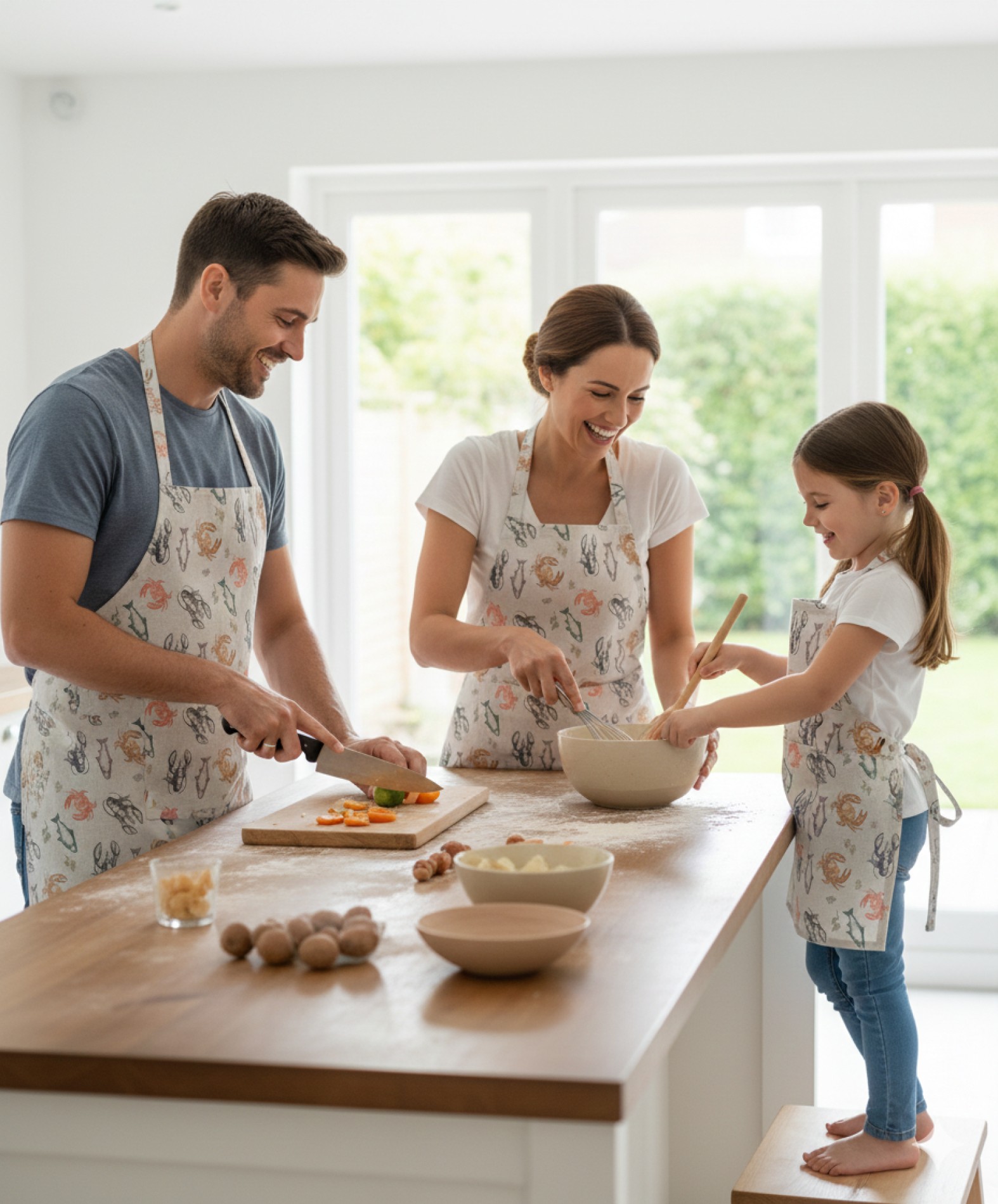 dekoratyvinės pagalvės, staltiesės, stalo takeliai, prijuostės, rankšluosčiai